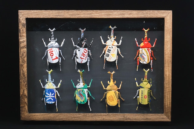 「これ、本物の缶でできてるの?」 手に取った人が必ずそう言います。 スーパードライ、角ハイボール、大麦生ビール、誰もが知っているあの缶を、職人の手で一体ずつ丁寧に切り出して成形。缶のデザインをそのままパーツに活かした、同じものは二度と作れない完全一点ものの標本です。 ◆こんな方に選ばれています 虫好きのお子さんへの特別なプレゼントを探している インテリアにこだわりがある 「ここにしかないもの」を飾りたい アートやリサイクルに関心がある ◆商品内容・素材 内容:アルミ缶製カブトムシ 8体/木製標本ケース(蓋付き) サイズ:幅365*奥265*高さ63mm 素材:使用済みアルミ缶・木製フレーム・ガラス すべて手作業による一点もの 作家:Alumichan flower https://ehime-artsupport.jp/artist/812.html